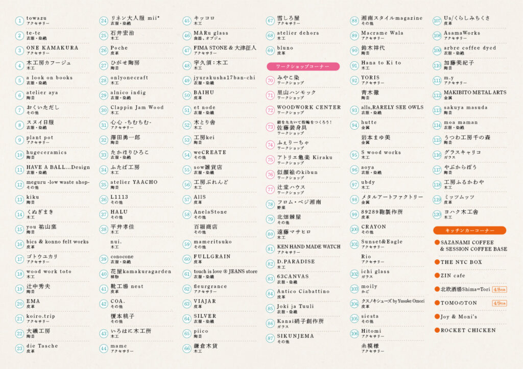 全国から100組を超える衣服、陶芸、皮革、金属などのクラフト作家や企業が参加、地元茅ヶ崎のキッチンカーの出店もございますので、ぜひ、お気軽にご来場ください。