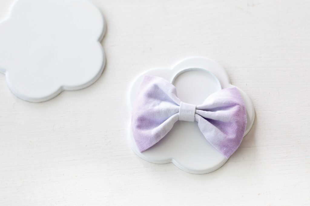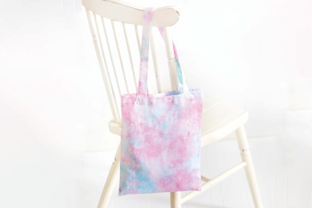 トートバッグ、シュシュ、リボンの髪ゴムをフェアリーピンクとアイスブルーの染料で