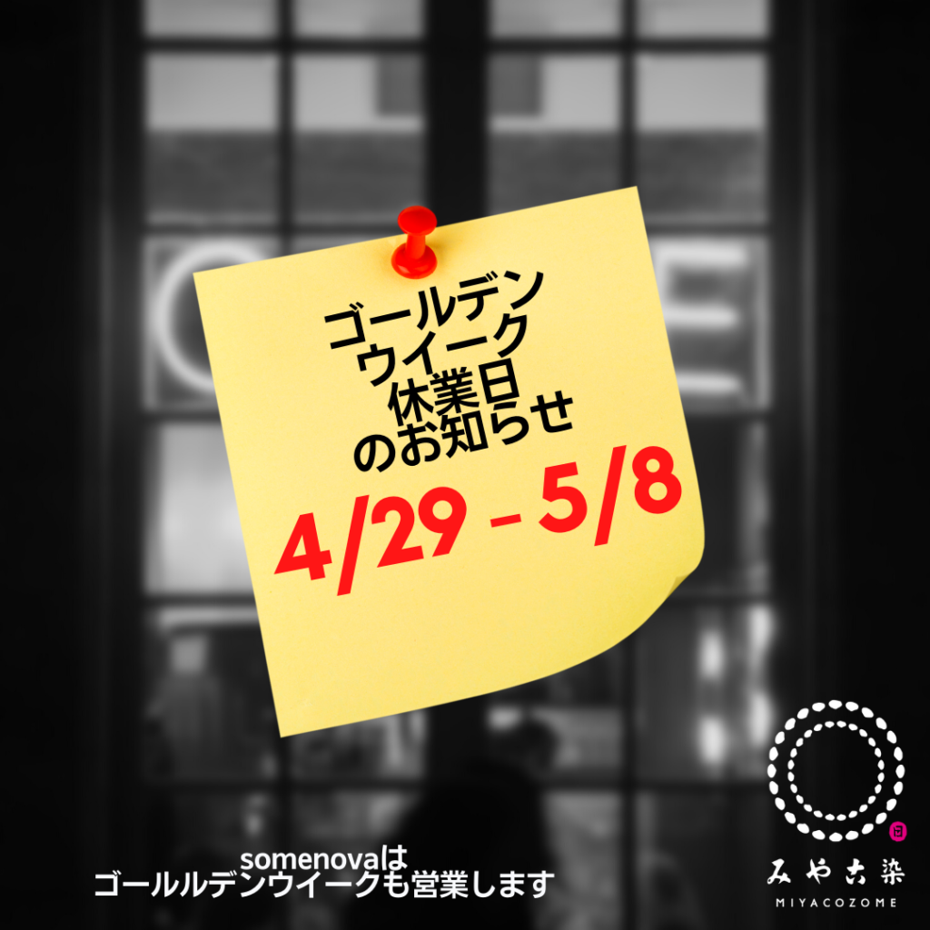 somenovaはゴールデンウイーク期間中も5月2日/6日の2日間を除き、営業しております👉詳細はsomenovaのページをご覧ください。