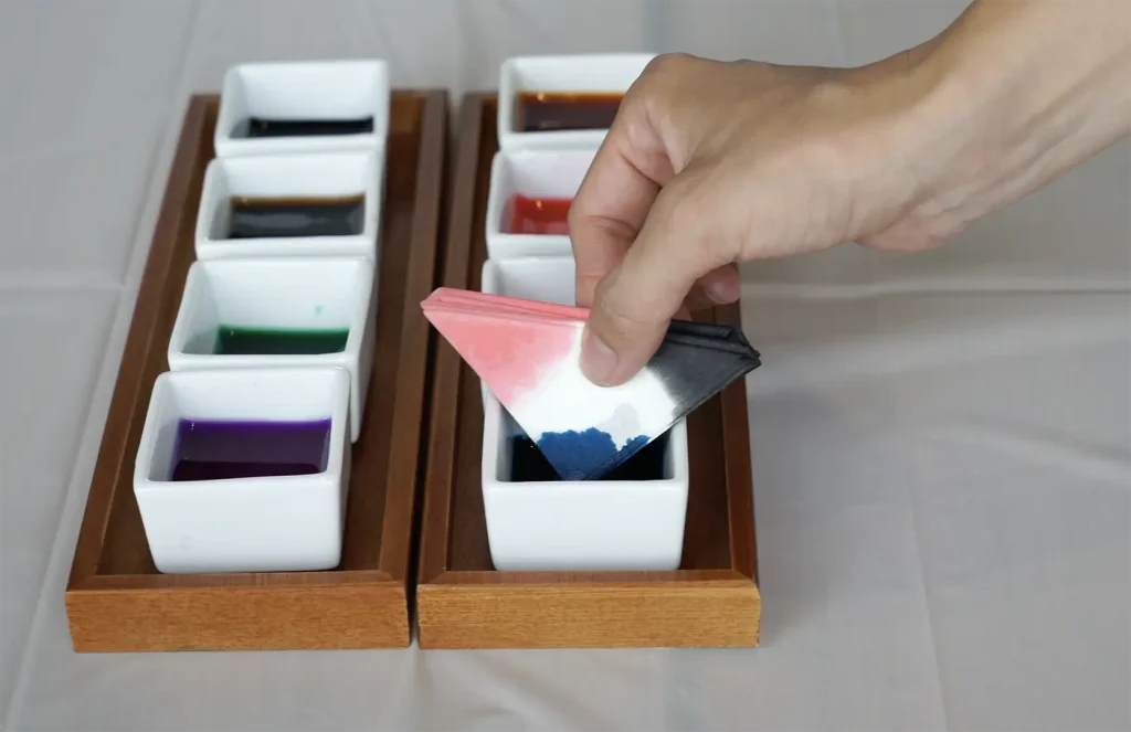 動画だけでは分かりにく部分や、動画ではご紹介していない折り方、染め方がありますので、ぜひ、ワークショップにご参加いただき、和紙染めの楽しさを実感していただけたら嬉しいです。