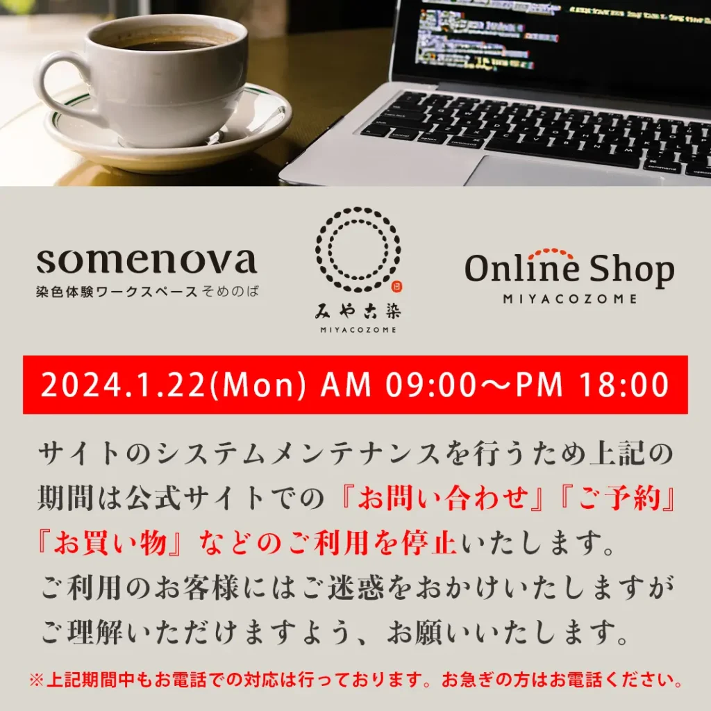 みやこ染をご利用いただきますお客様に公式HPのシステムメンテナンスに伴いサービス停止について、お知らせいたします。