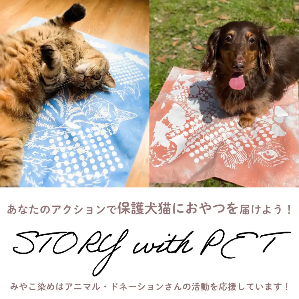 また、みやこ染ではアニドネさんとの共同企画として、チャリティー付きの商品『キャット&ドッグハンカチダイキット』を発売中です💕