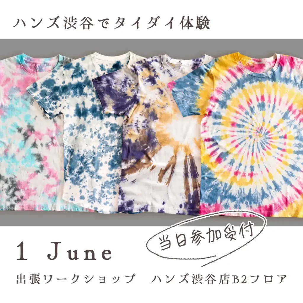2024年6月1日(土) ハンズ渋谷店にてタイダイ染めTシャツを作るワークショップを開催いたします。