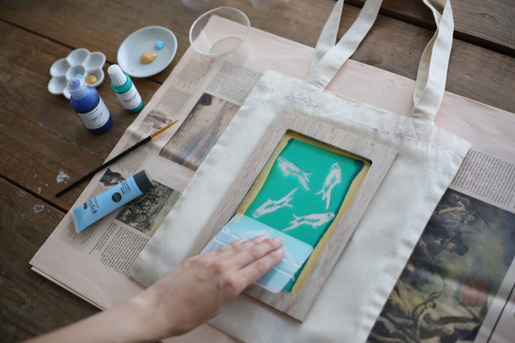 14:30〜17:00 ・作成した版の試し刷り・ステンシルでエコバッグ作り