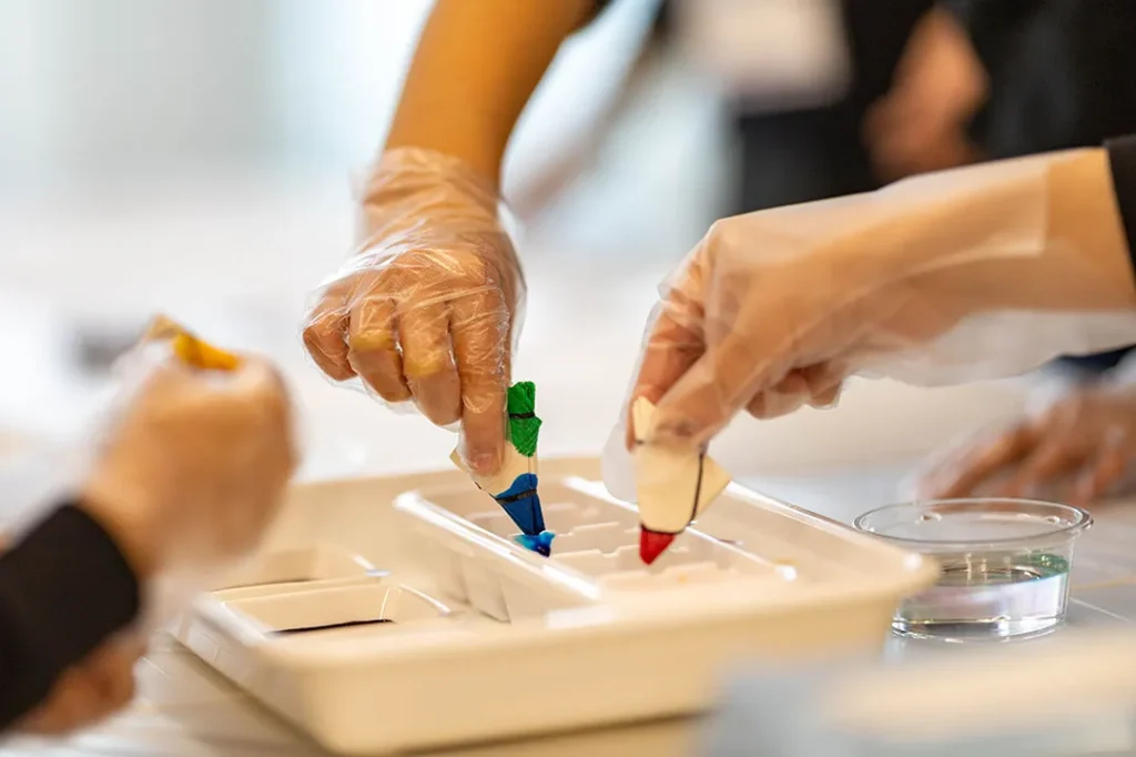 『染色研修会』は家庭科や美術科、手芸部などの担当教員の方や、特別支援学校の教員の方、染料を使ったアクティビティーやワークショップの実施を検討されている方といった、染料と染色のことをもっと詳しく知りたい、ご自身で染色の指導ができるようになりたい方に向けた内容となっております。