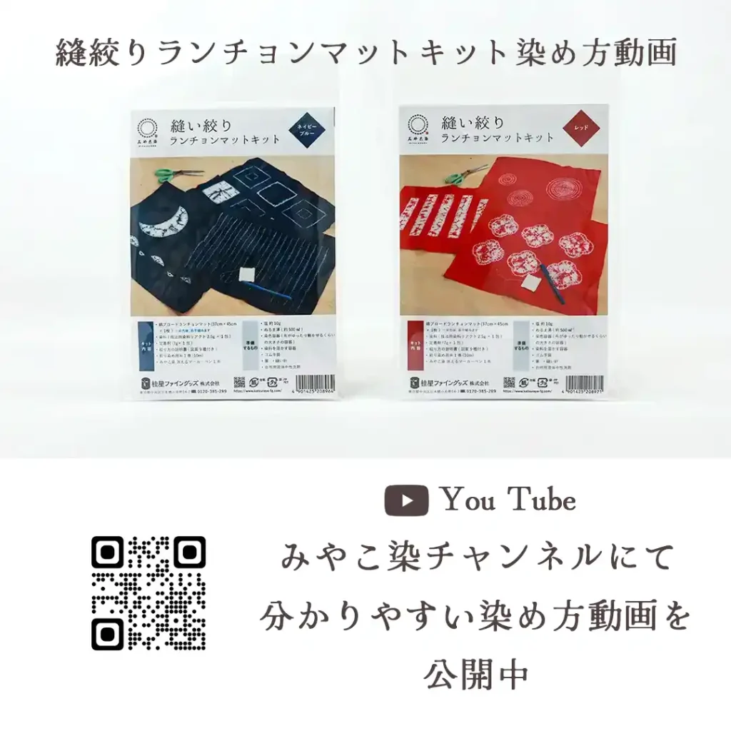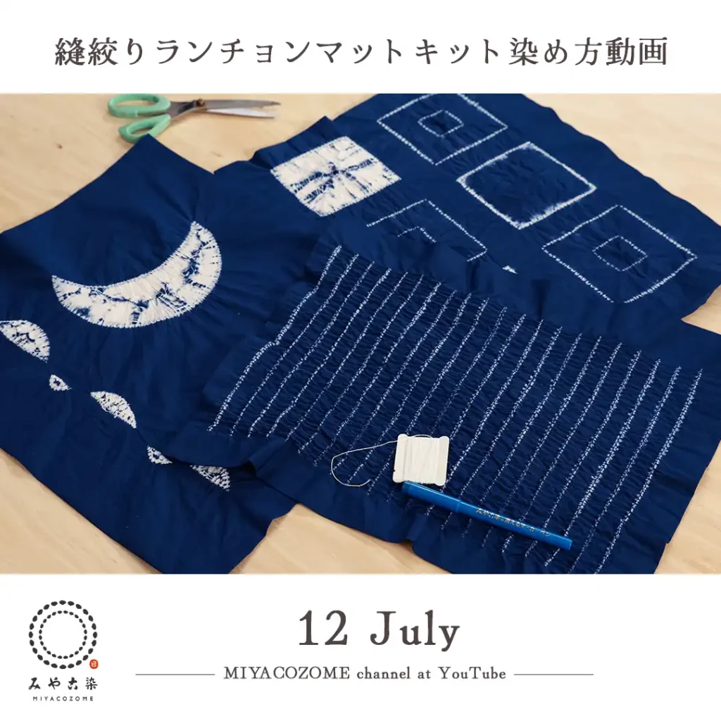 先週に引き続き、本日からみやこ染の染色キット、『縫絞り ランチョンマットキット』の絞り方、染め方をご紹介する動画が公開になりました!