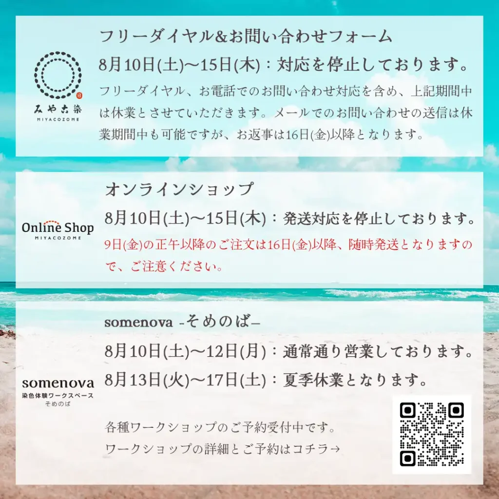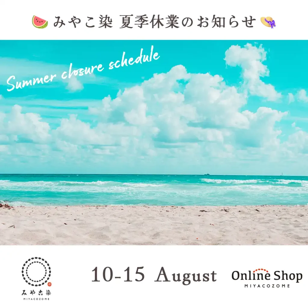 2024年8月10日(土)〜15日(木)にかけての夏季休業および営業日のお知らせです。