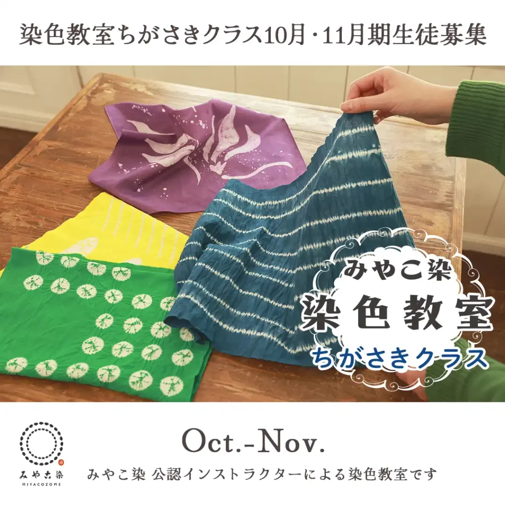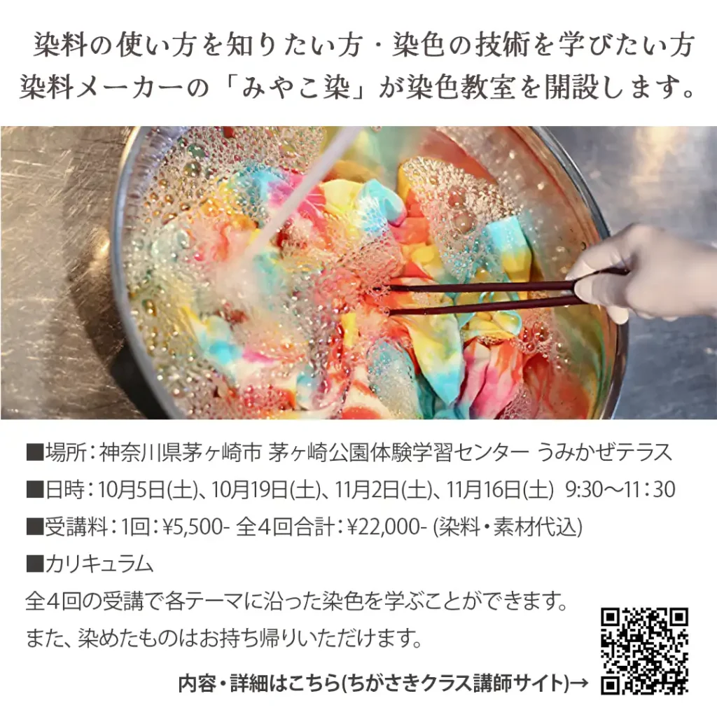 みやこ染が主催する、みやこ染 染色教室『ちがさきクラス』の10月・11月期生徒の募集を開始しております。