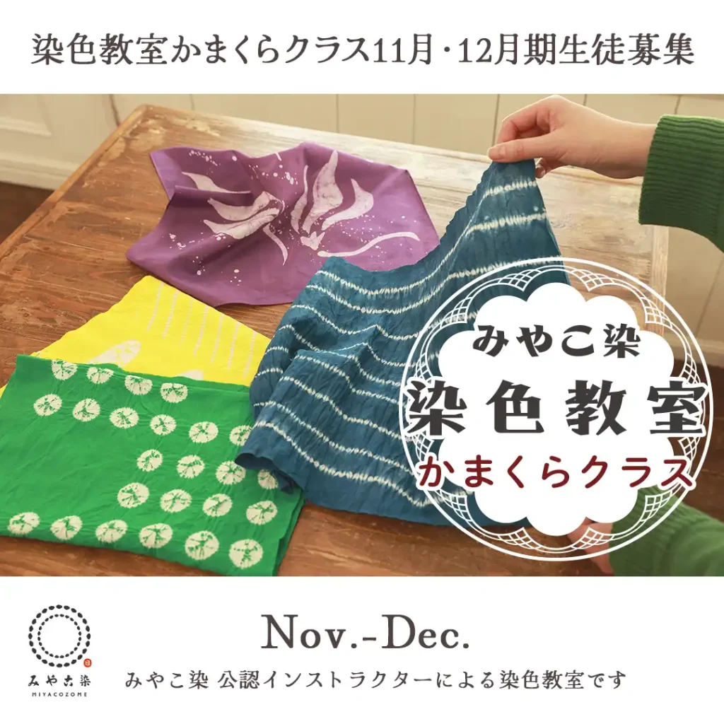 みやこ染が主催する、みやこ染 染色教室『かまくらクラス』の11月・12月期生徒の募集を開始しております。