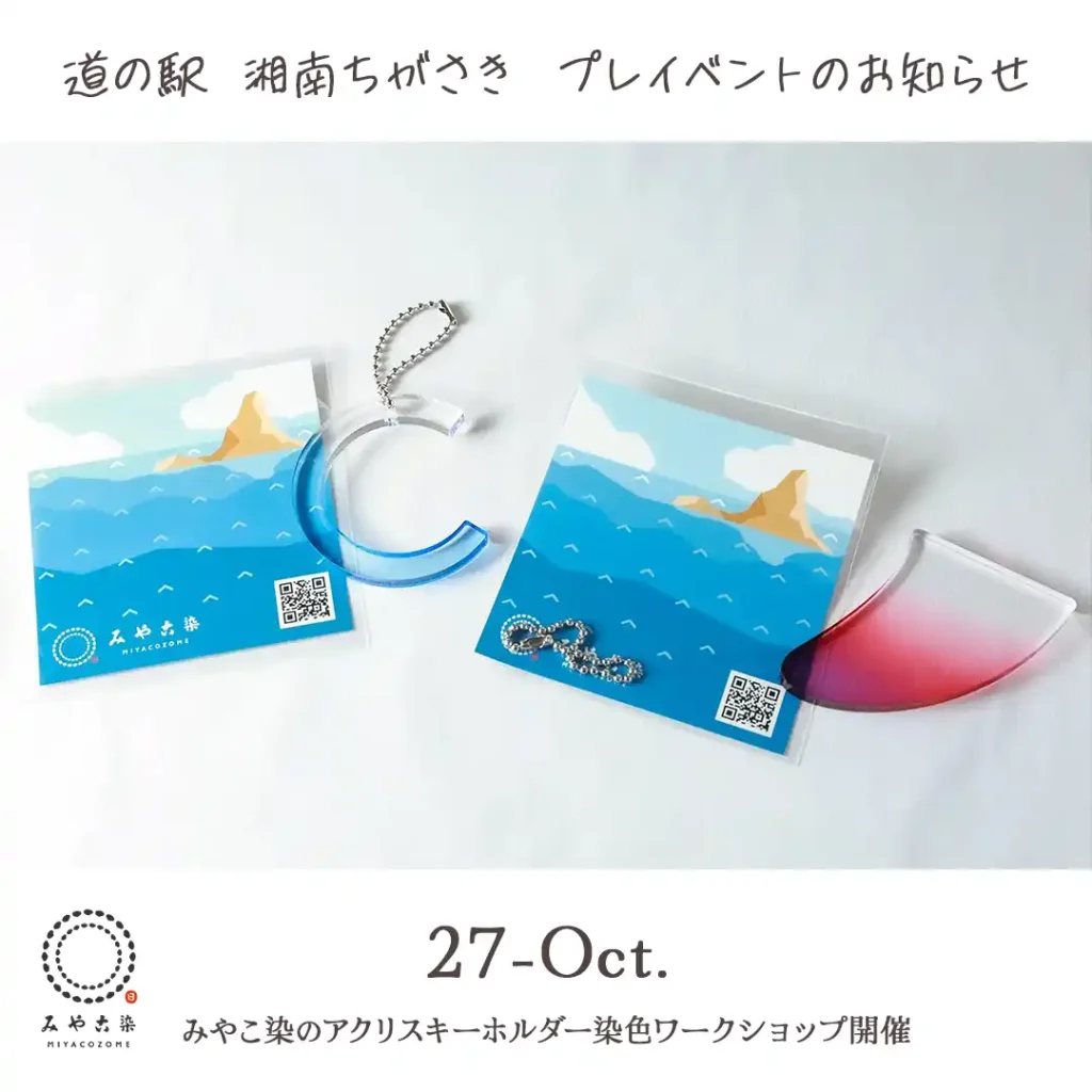 当日、みやこ染は茅ヶ崎限定のオリジナルアクリルキーホルダーを染色するワークショップを行います。