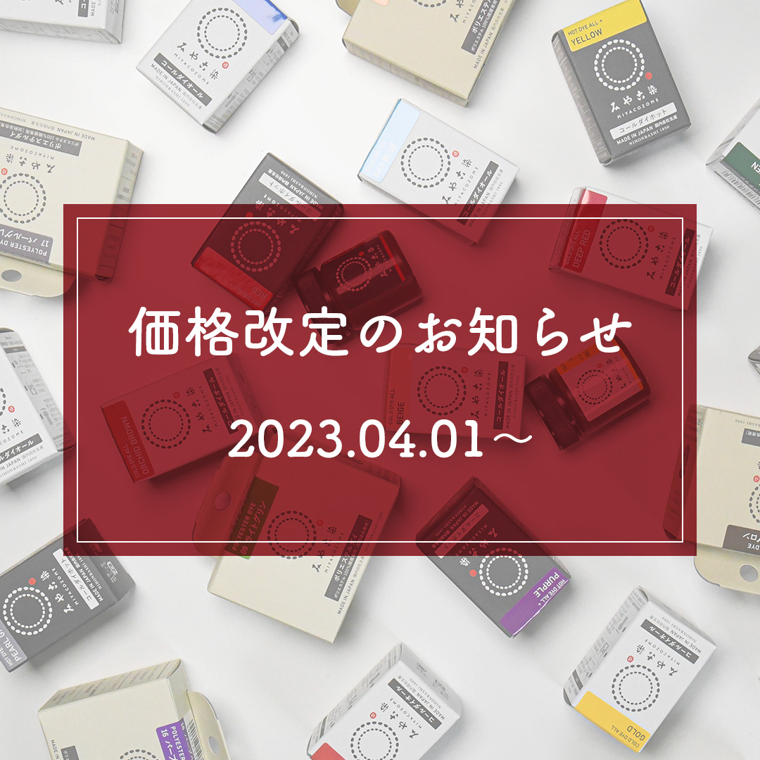 いつも、みやこ染をご愛顧いただき、ありがとうございます。 この度は原料・資材価格などの高騰にともなう主要商品の価格改定について、お知らせいたします。 弊社では、国内自社工場での品質維持と安定的な供給を継続するため、202 […]