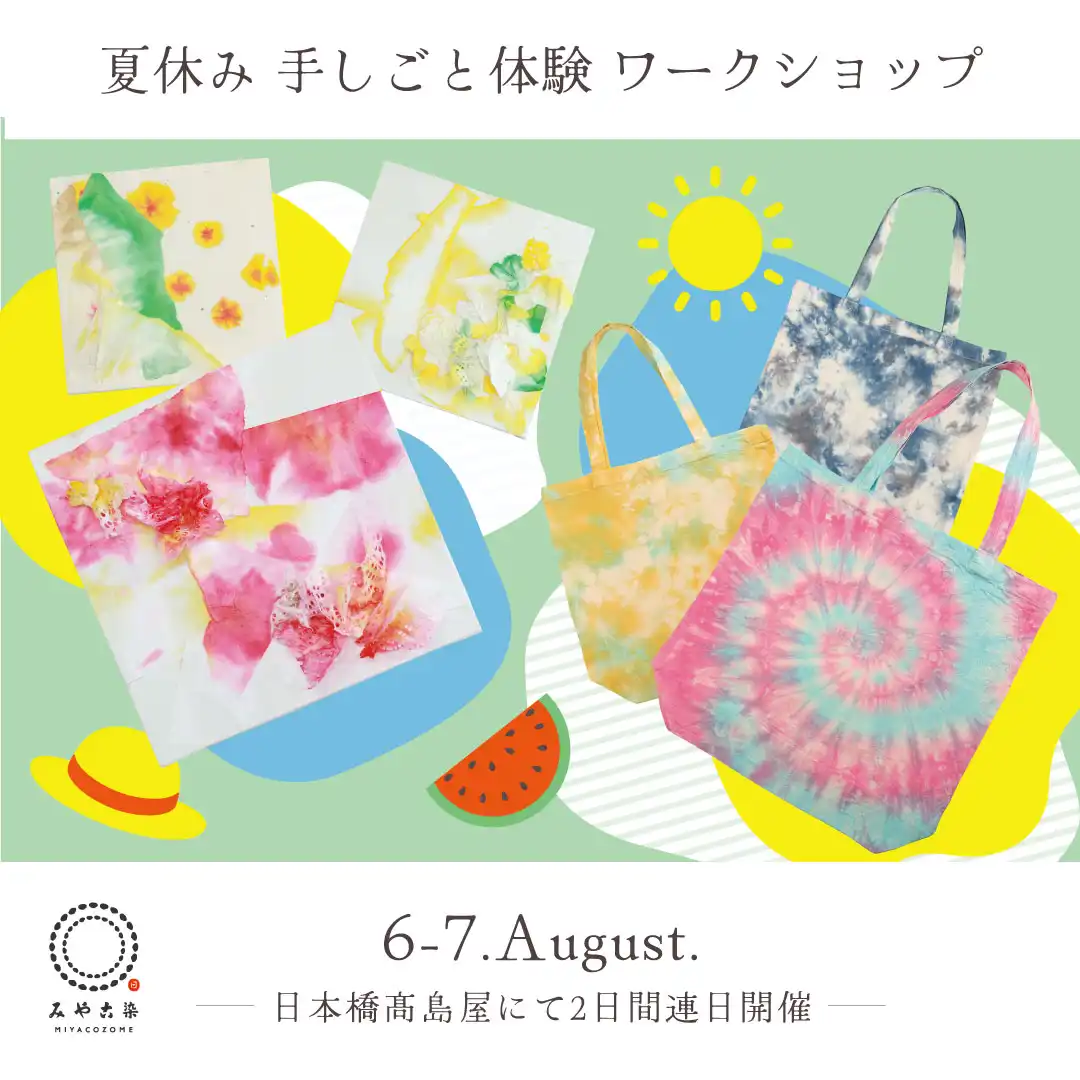 2024年8月6日(火)・7日(水)の2日間、日本橋髙島屋ガレリアコミュニティスペースにて『夏休み手しごと体験ワークショップ』と題しまして、お子様向けのワークショップを開催いたします! 当日は『和紙と染めで作るアートパネ […]