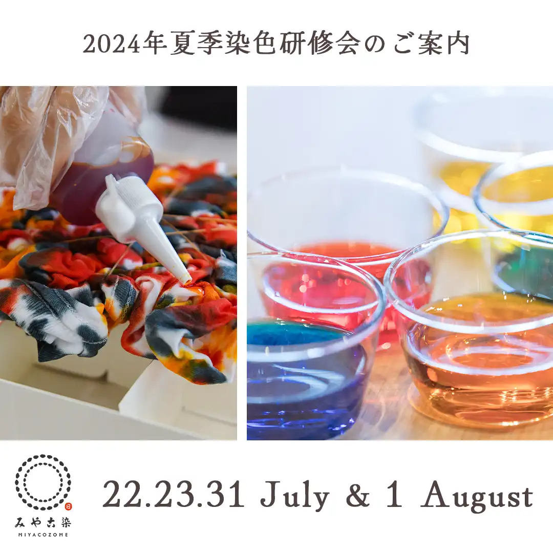 この夏、みやこ染では『2024年夏季 染色研修会』を実施いたします。 『染色研修会』は家庭科や美術科、手芸部などの担当教員の方や、特別支援学校の教員の方、染料を使ったアクティビティーやワークショップの実施を検討されている […]
