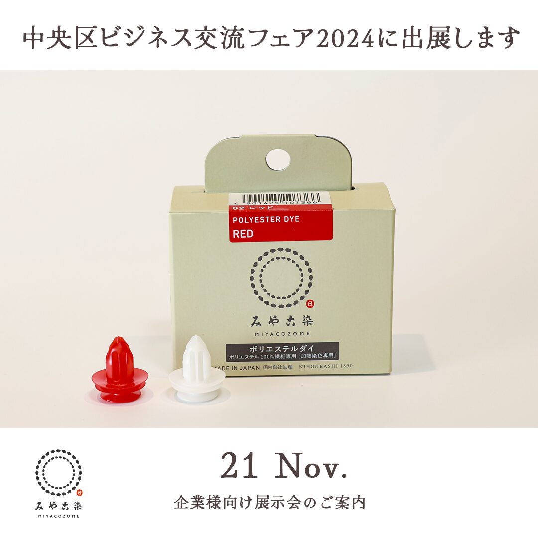2024年11月21日(木)開催の企業様向け展示会『中央区ビジネス交流フェア2024』にみやこ染が出展いたします。 当日はみやこ染の定番商品、特にポリエステルやシリコンといった樹脂成型品が染まる染料を中心に、幅広いライン […]