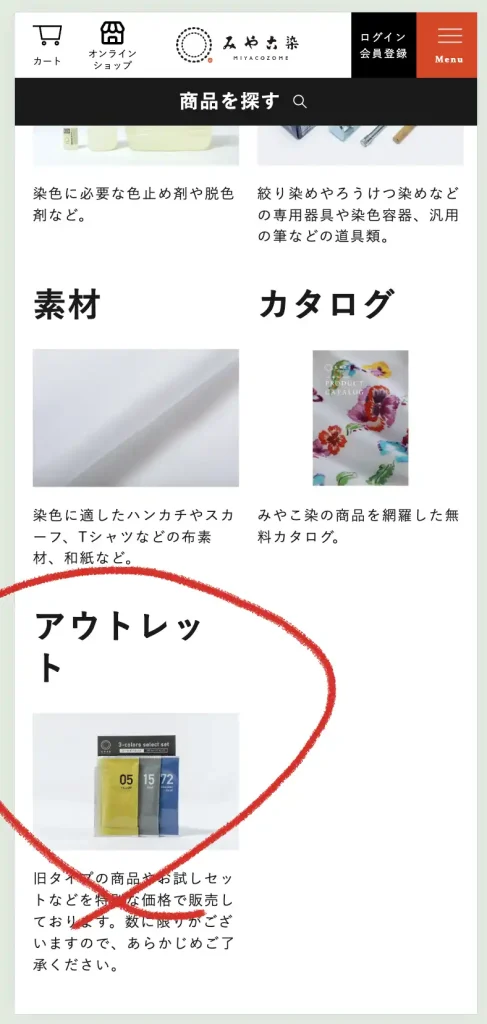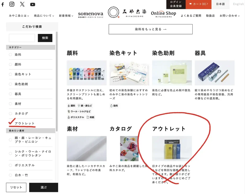 みやこ染の公式オンラインショップにアウトレット商品ページができました。