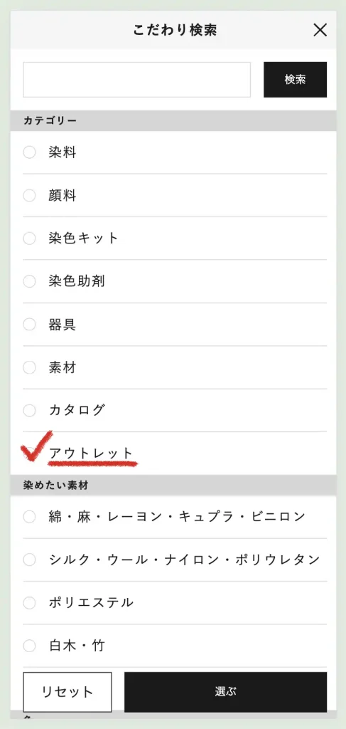 オンラインショップのアウトレットページはこちら