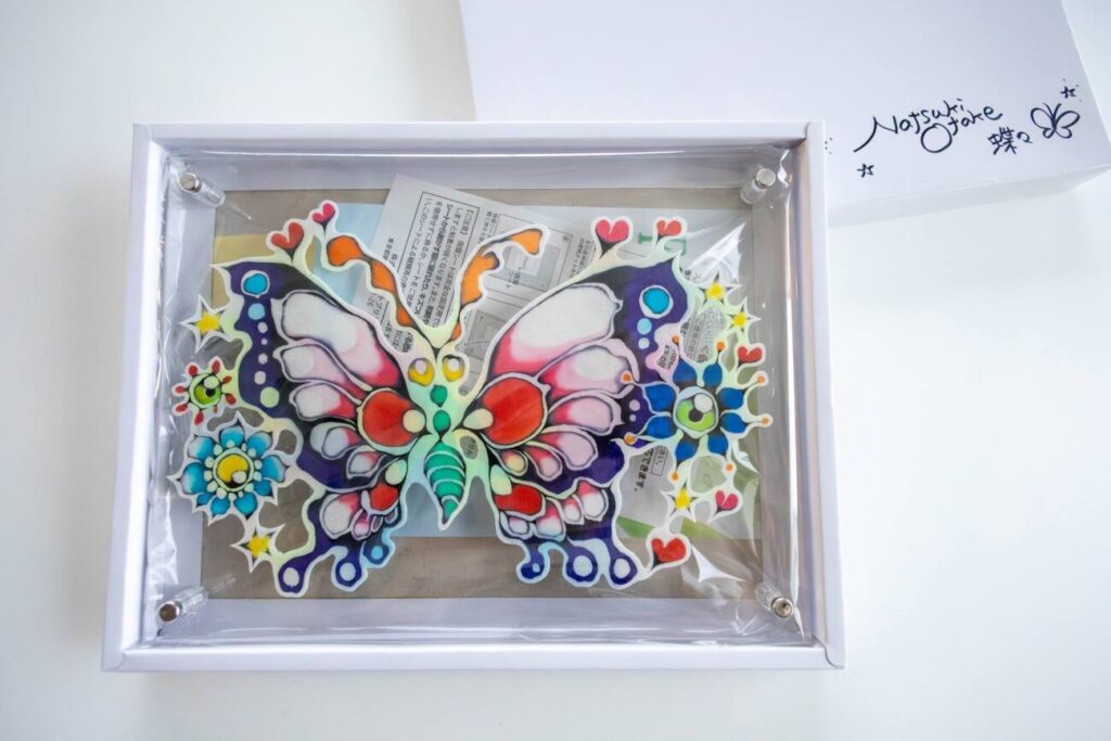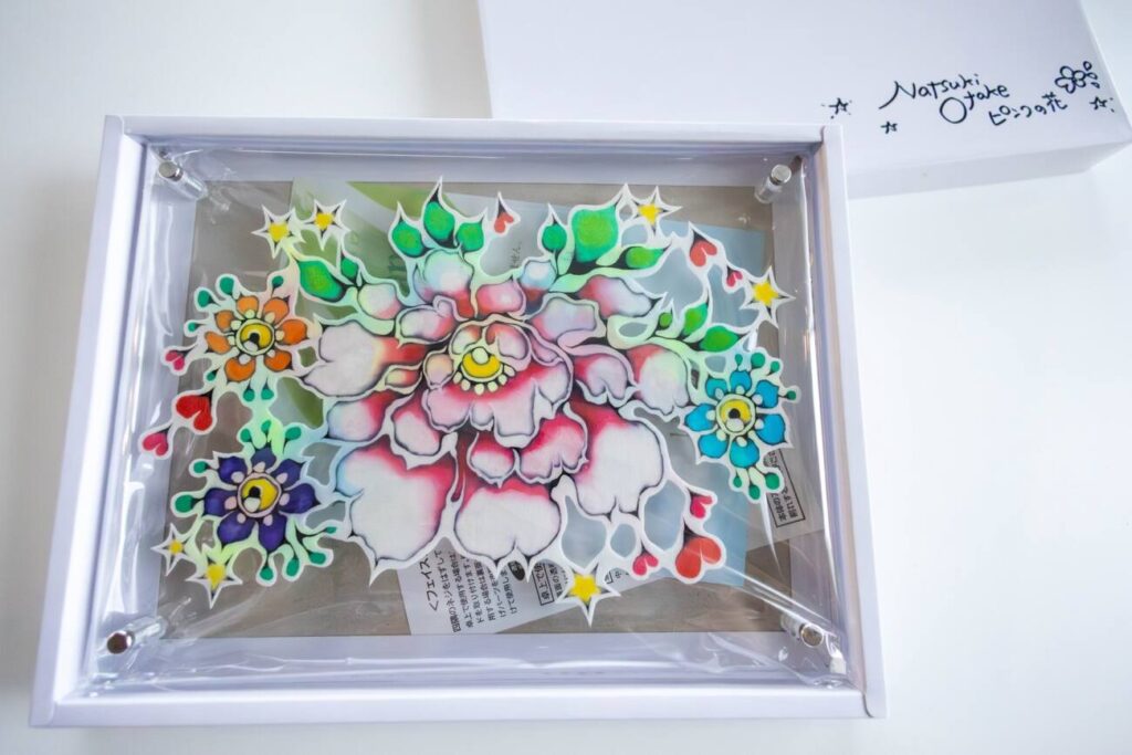 【リターン内容】 ・大竹先生のろうけつ染作品 1点 アクリルフレーム額装18×24cm ・みやこ染 ろう溶器 1台
