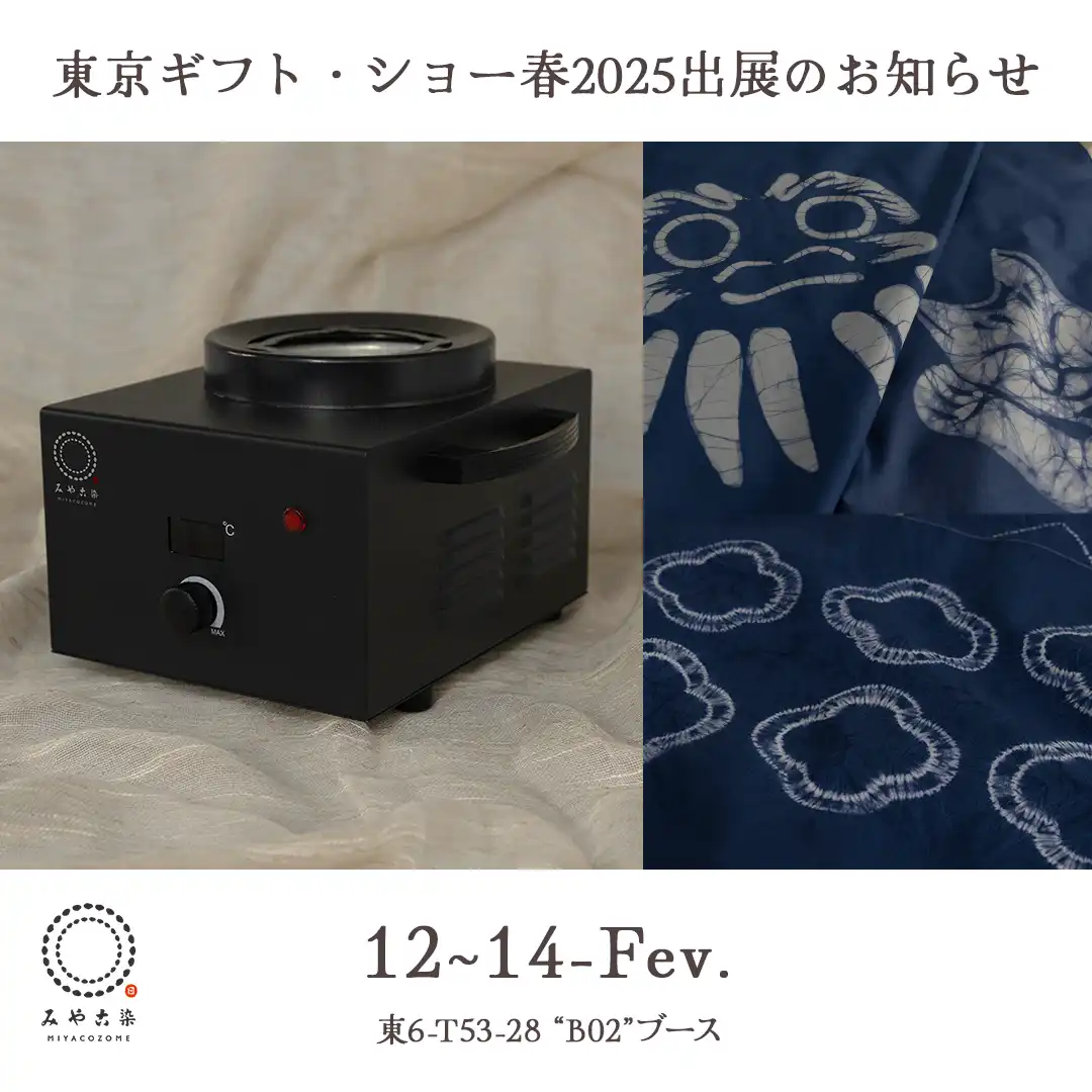 2025年2月12日(水)〜14日(金)の三日間開催されます、東京ギフト・ショー春2025にみやこ染が出展いたします。 会場では4月から一般販売を開始する『みやこ染 ろう溶器』の実器の展示を行う他、『ろうけつ染め 大判ハ […]