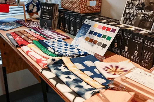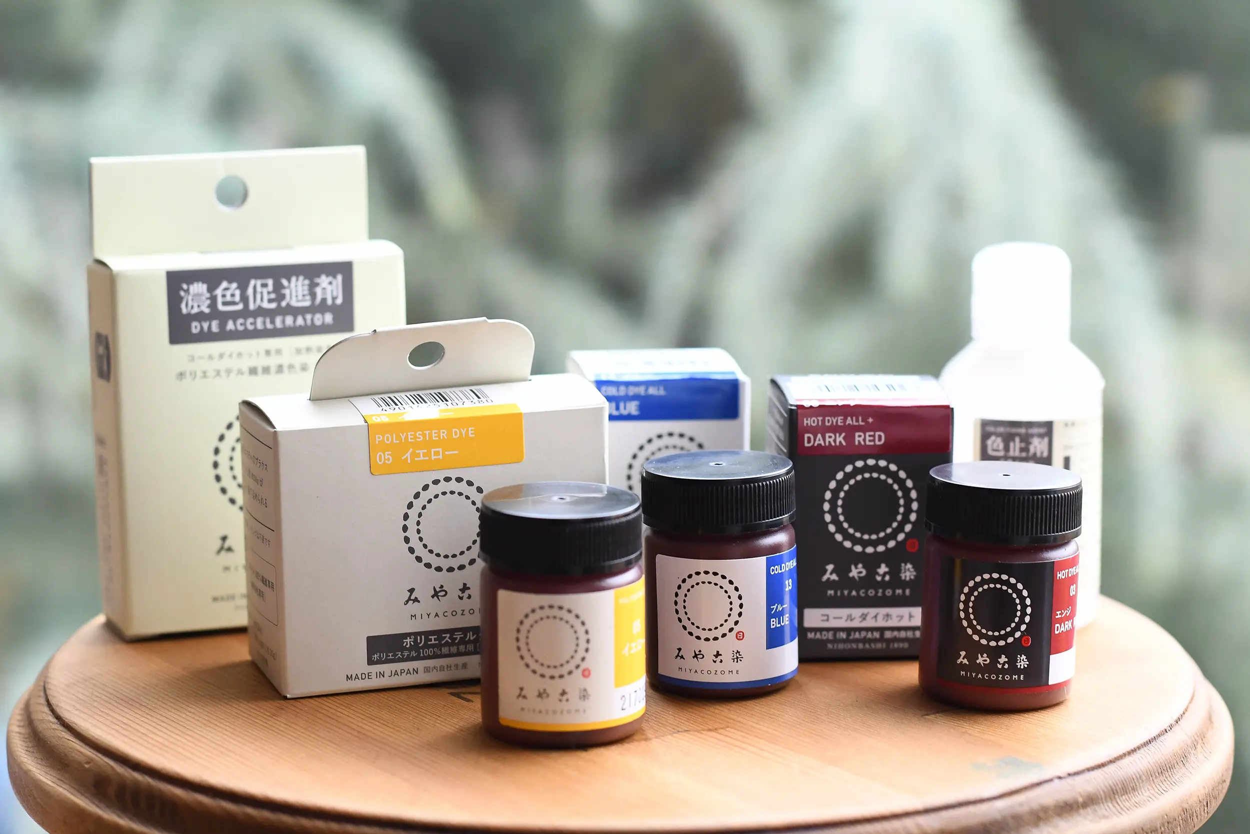みやこ染オリジナルの染色キットなども、実際の作例と共に手に取ってご覧いただけます。